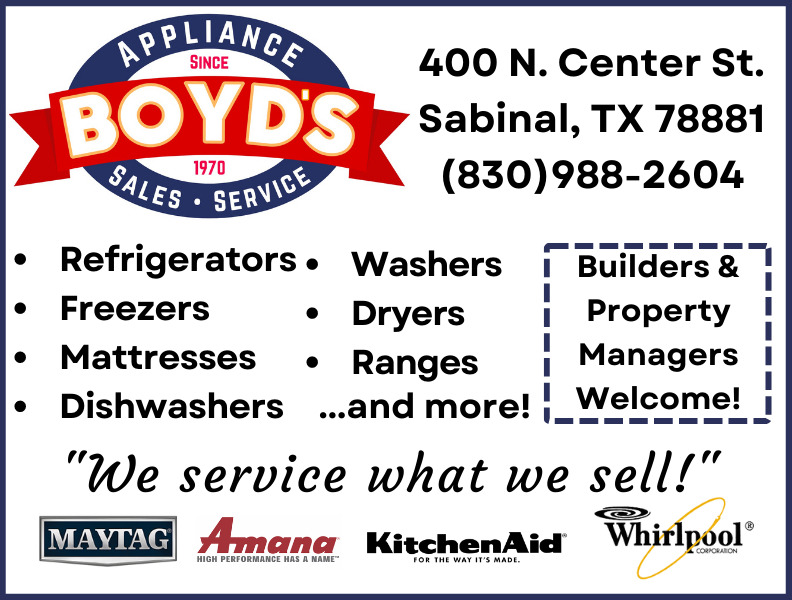 Ads for Boyd's Appliance Sales & Service in Sabinal, TX