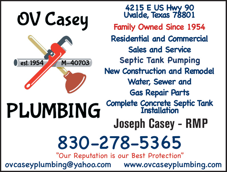 Ads for OV Casey Plumbing in Uvalde, TX